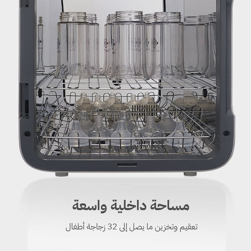 التعقيم والتخزين التلقائي - يتم تشغيل مصباح التعقيم بالأشعة فوق البنفسجية تلقائيًا لمدة دقيقتين كل 3 ساعات لتعقيم زجاجة الطفل المعقمة وتخزينها تلقائيًا